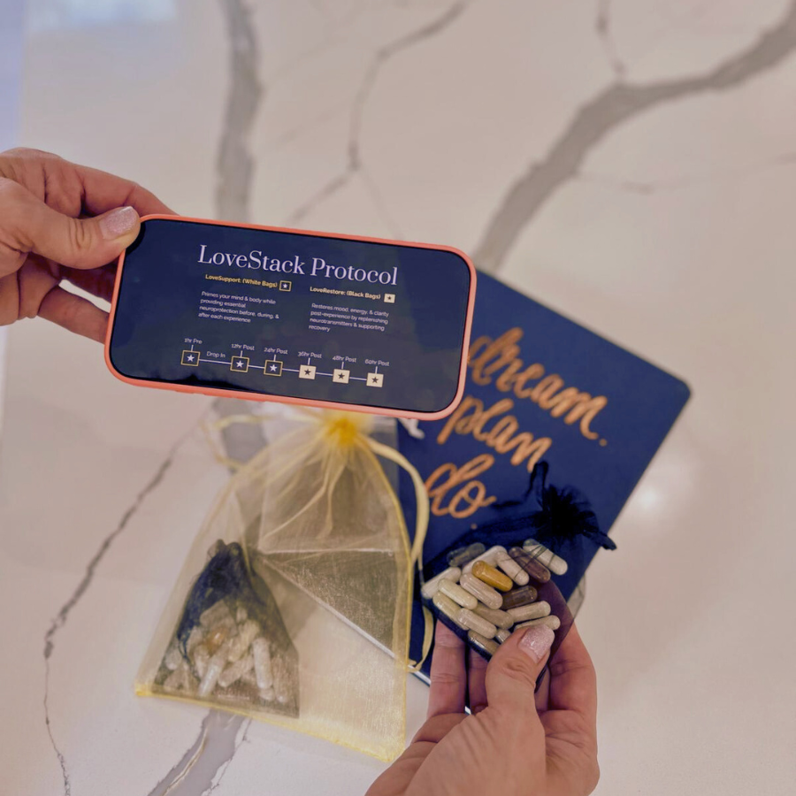 ✨ LoveSupport (White Bag): Renews your mind & body, restoring essential nutrients before, during, & after each experience.